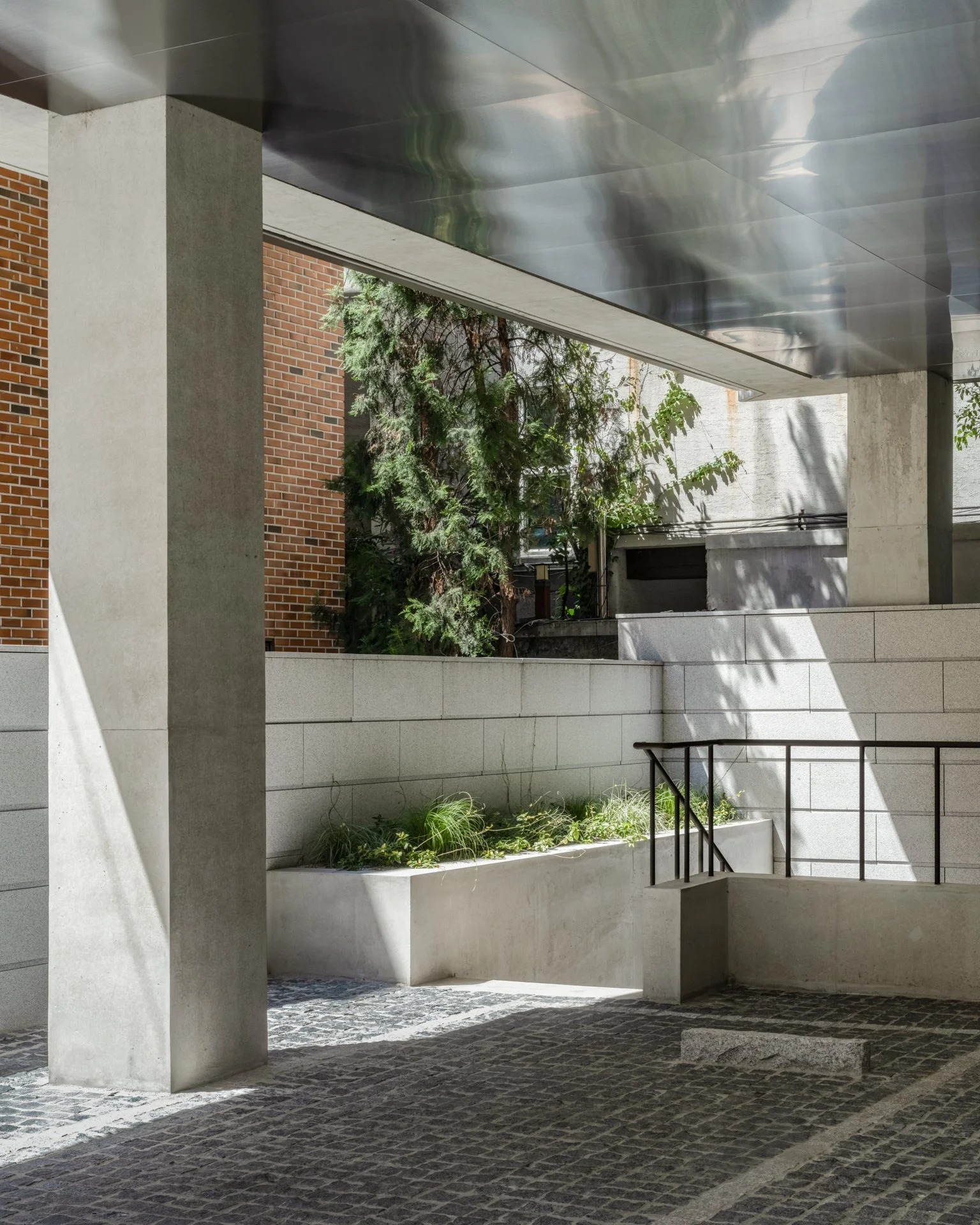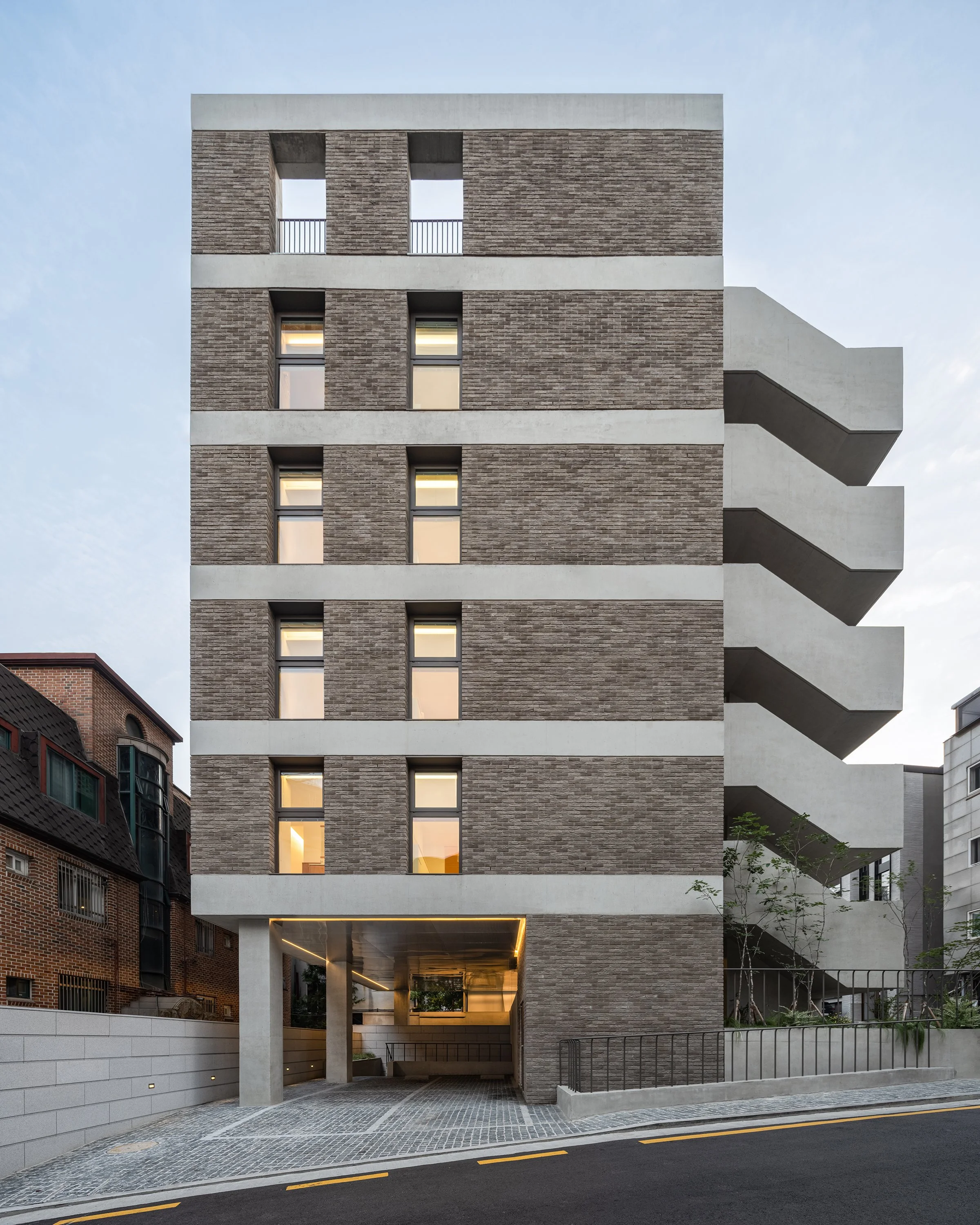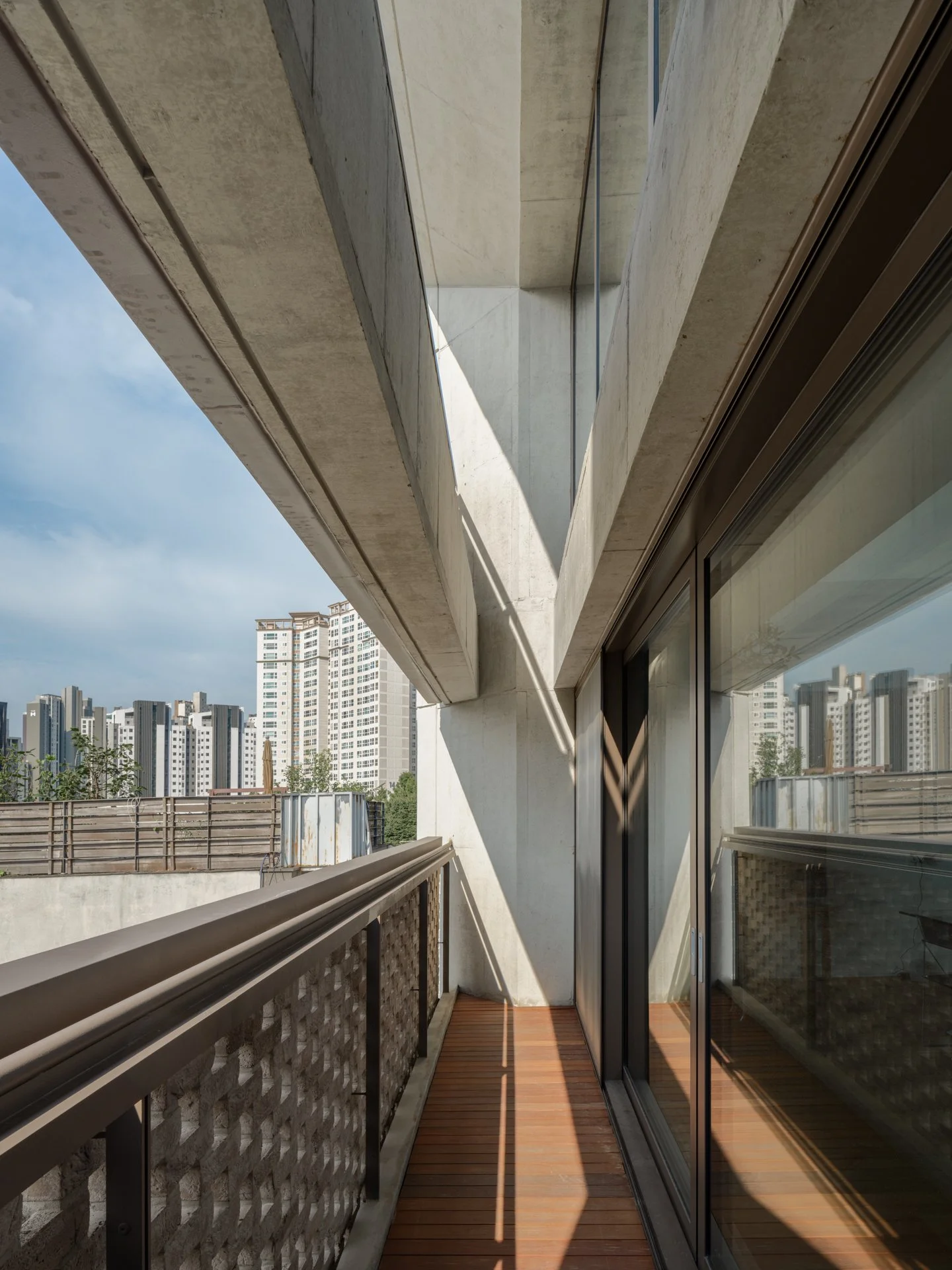 도심 한가운데라는 위치를 감안했을 때, 100평에 가까운 큰 대지를 최대한 개방적으로 활용하기 위해서 내부를 무주공간으로 계획하고 각 층에 확장된 외부공간인 발코니를 제공하였다. 기둥이 없는 실내를 만들기 위해 코어와 서비스공간을 세심하게 배치하여 스판이 10미터가 넘는 반듯한 전용공간을 중간구조물 없이 활용할 수 있게 되었다. 남측과 북측 발코니는 각 층 슬라브를 더욱 확장키는 요소이다.