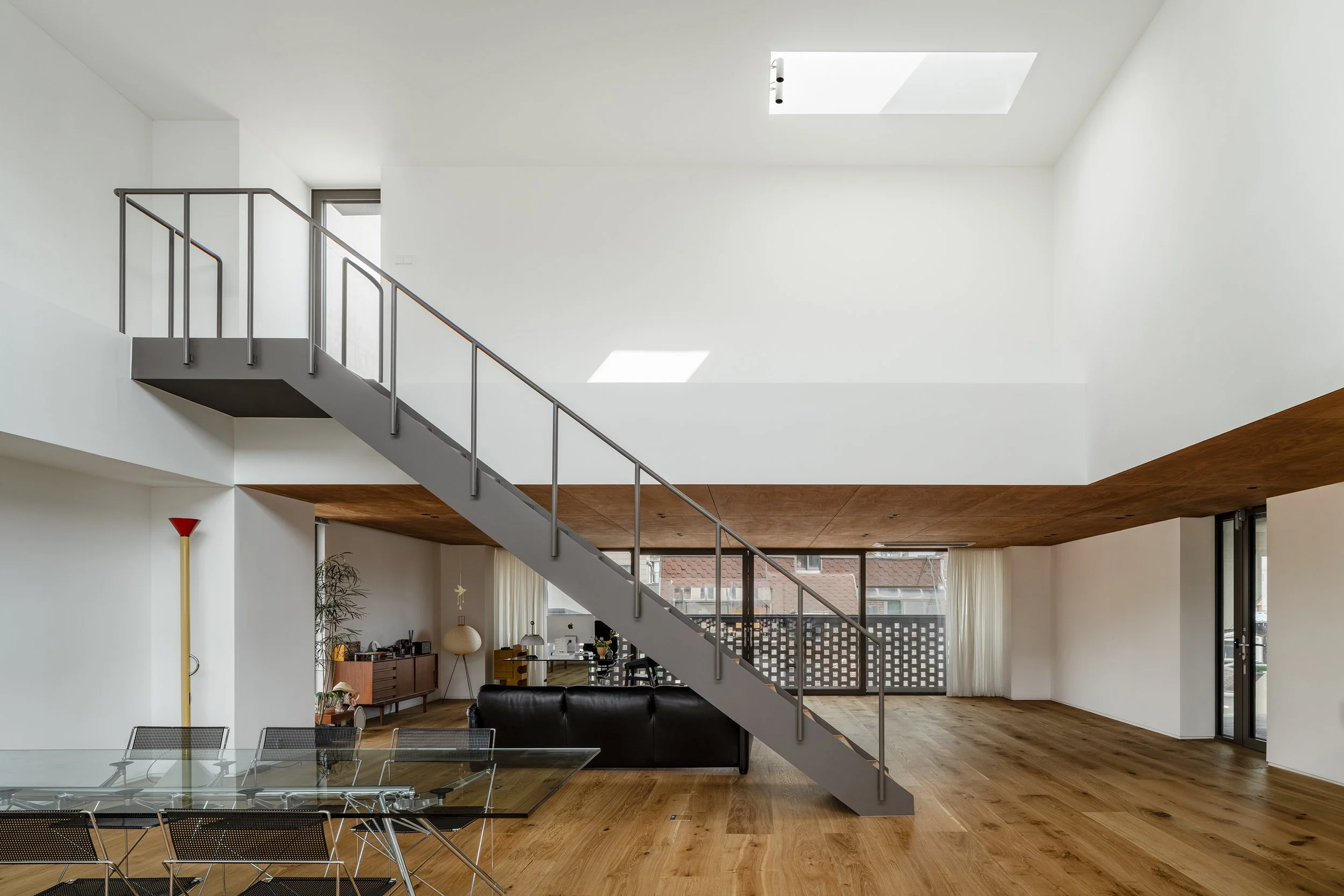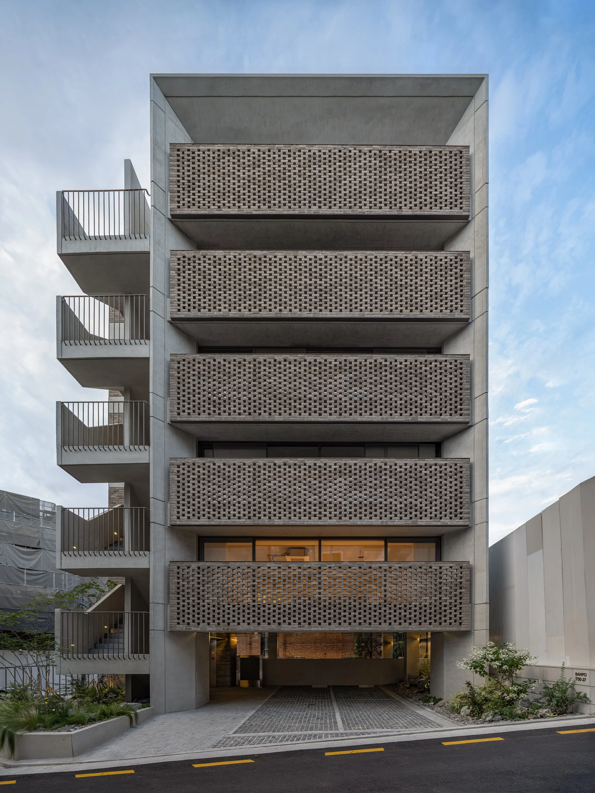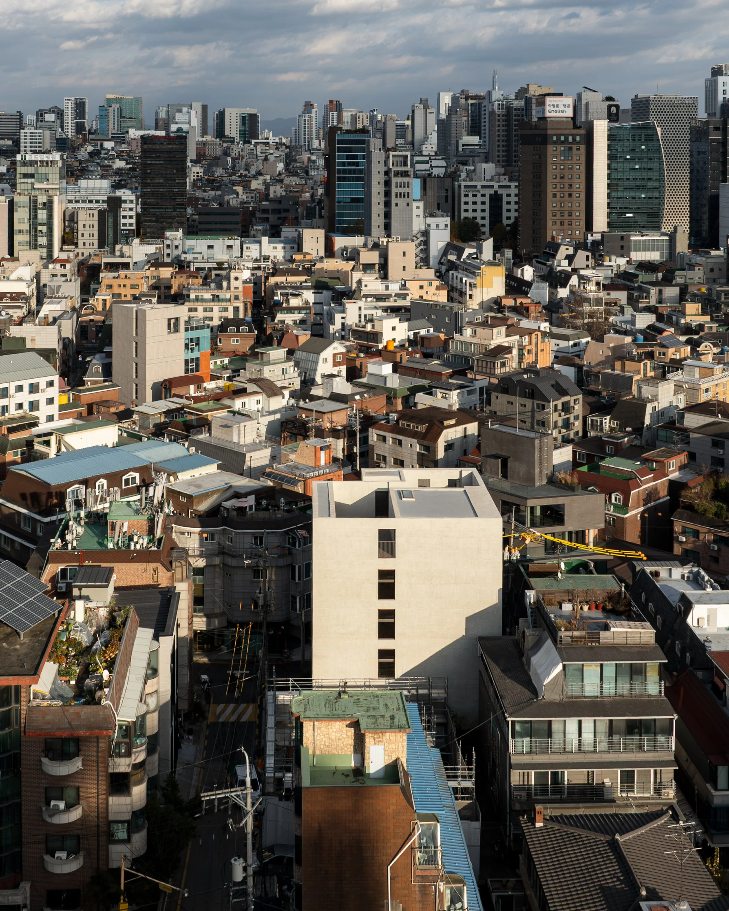 도심 한가운데라는 위치를 감안했을 때, 100평에 가까운 큰 대지를 최대한 개방적으로 활용하기 위해서 내부를 무주공간으로 계획하고 각 층에 확장된 외부공간인 발코니를 제공하였다. 기둥이 없는 실내를 만들기 위해 코어와 서비스공간을 세심하게 배치하여 스판이 10미터가 넘는 반듯한 전용공간을 중간구조물 없이 활용할 수 있게 되었다. 남측과 북측 발코니는 각 층 슬라브를 더욱 확장키는 요소이다.